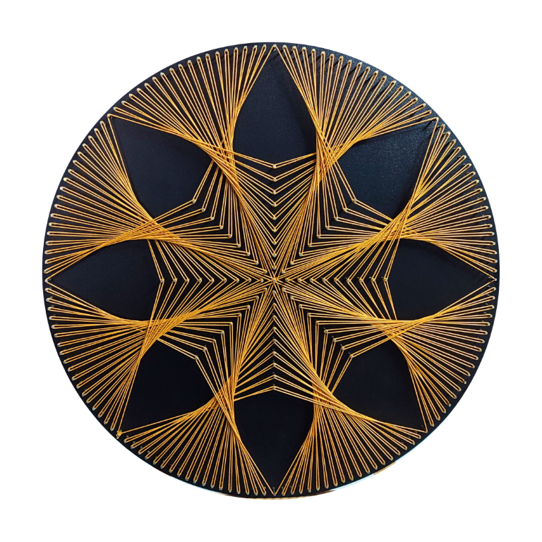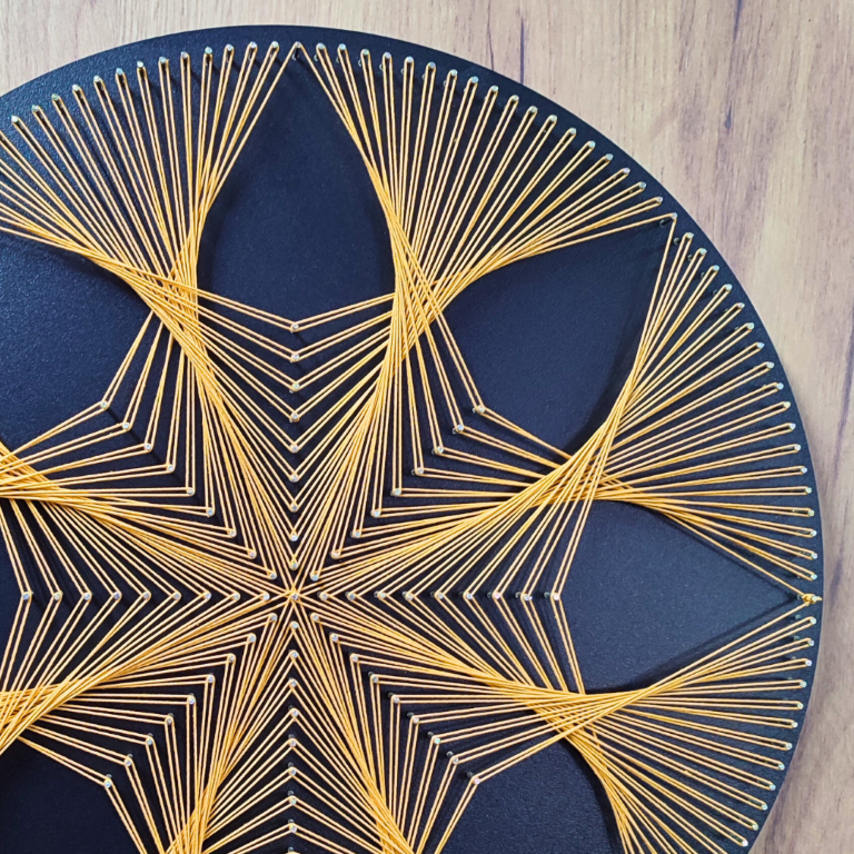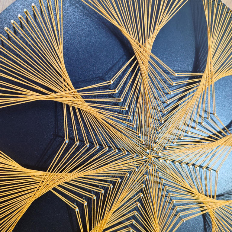 - Poprawia samopoczucie i poziom stresu – tworzenie obrazów string art to doskonała terapia relaksacyjna i sposób na odprężenie po ciężkim dniu.